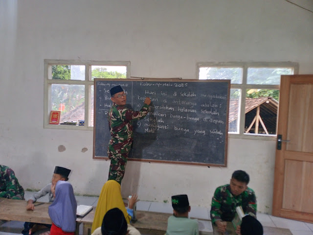 Kegiatan tersebut dilakukan oleh Serka Su’in dari Bintalrem 083/Baladhika Jaya bersama sejumlah anggota Satgas TMMD di Yayasan Al-Jazuli, yang diasuh oleh Kyai Jazuli di Dusun Jambuan, Desa Plalangan.